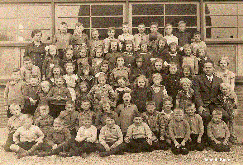 Voor namen: ga met de muis op het hoofd van een persoon staan. Schrijfvouten voorbehouden. Klas staat achter de naam. Tevens dank aan Johan Schrooten jr. voor de medewerking, aan Albert Buiter voor het verzamelen van namen bij diverse mensen en aan Willem Stolte voor het lenen van de absentieboeken.