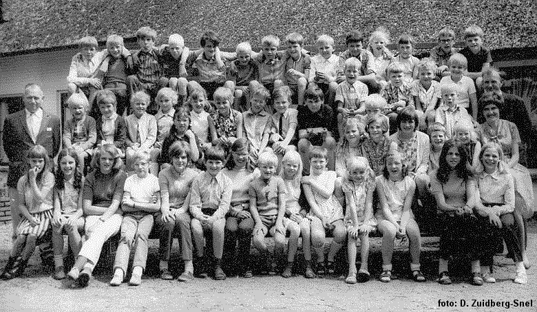 Voor namen: ga met de muis op het hoofd van een persoon staan. Klas staat achter naam. Schrijfvouten voorbehouden. Tevens dank aan fam. v.d. Linde voor het lenen van de absentieboeken. Foto is genomen bij sprookjestuin "De Elf Prpvinciėn", (nu attractiepark) in Hellendoorn. (met dank aan Wilma van Pijkeren - Van Lenthe)