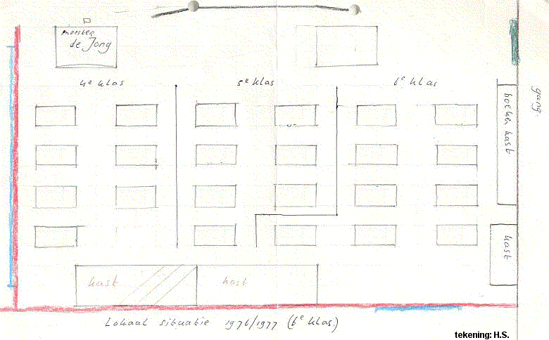In juli 2007 was het alweer 30 jaar geleden dat deze (ouwe) jongen voor de laatste keer de deur van 't Plankenloodsje achter zich dicht deed. In die tijd is ook deze situatie van klas 4, 5 en 6 getekend zoals deze was in 1976/77.