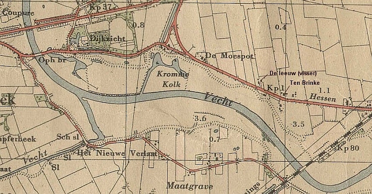 Een uurtje of zo later of kwam m’n grote neef Bert vragen of ik mee ging schaatsen op de Vecht. Schaatsen deed je op schoenen alhoewel mijn opa vertelde dat men vroeger op sokken ging schaatsen. Weg was mijn angst voor koude voeten en ik kan me ook niet herinneren dat mijn moeder bezwaar maakte tegen het schaatsen en dan nog wel op de Vecht. Zo een ieder op de kaart kan zien, stond onze boerderij naast het huis van De Leeuw, die samen met zijn oudste zoon beroepsvisser op de Vecht was.