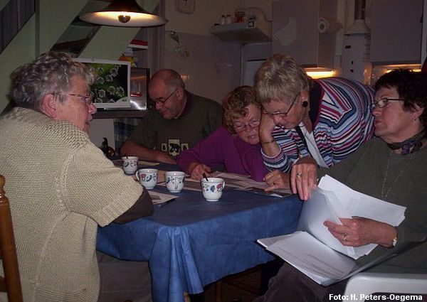 De namen-zoekers oktober 2006: v.l.n.r.: Hilly, Mient, Sjoukje, Gerrie en Dicky Oegema.