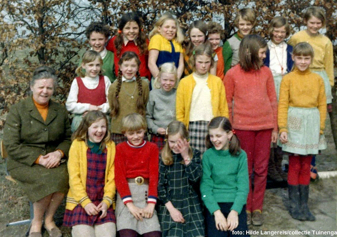 Juf Tuinenga met de meisjes uit klas 4, 5 en 6 1969/1970